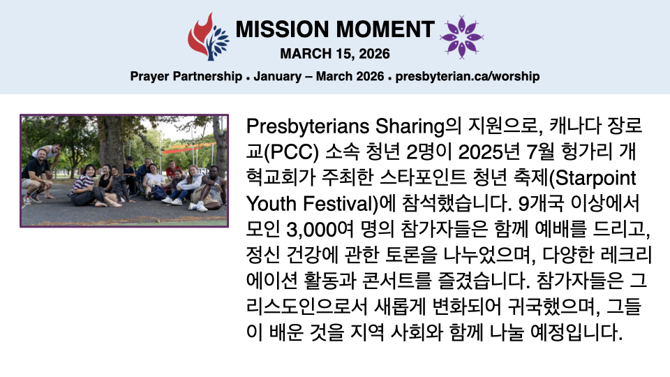 사순절 넷째 주일 예배에 참석하신 모든 분들을 주님의 이름으로 환영하고 축복합니다