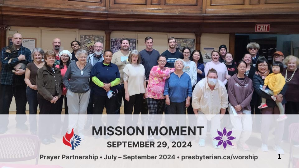 오늘은 Presbyterians Sharing Sunday 로, 우리가 함께 하는 사명과 사역을 기념하는 날입니다. 장로교회 나눔 기금은 캐나다와 전 세계의 광범위한 선교와 사역을 지원합니다. 건강한 교회를 세우고, 약한 사람들을 섬기고, 원주민들과 함께 걷고, 정의를 구하고, 전 세계에 하나님의 사랑을 전합니다. 우리는 노숙자를 섬기고, 성매매에 연루된 사람들이 삶을 되찾을 수 있도록 돕습니다. 우리는 회중이 사역을 갱신하는 새로운 방법을 발견하도록 돕고 회중이 예배와 공부에 사용할 수 있는 많은 자료를 제작, 제공합니다. 우리는 대만의 원주민 언어로 성경을 번역하고 말라위에 있는 수감자들에게 희망과 사랑을 전하는 일을 돕습니다. 그리고 무엇보다도! 우리가 우리의 나눔을 하나님의 손에 맡길 때, 하나님은 놀라운 일을 행하십니다